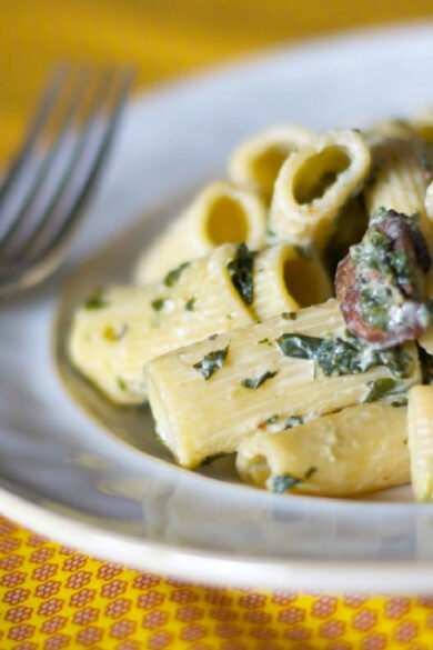 Rigatoni pasta with diced Portobello mushrooms, garlic and fresh spinach in a creamy Parmesan cheese sauce. Pasta is perfect for busy weeknights because it's so versatile. Add vegetables, protein and/or some sauce and you have a satisfying meal. My family loves this Creamy Rigatoni with Portobello Mushrooms and Spinach and I make it a few times a year. It comes...